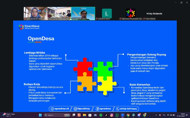 Kamis, 27 November 2025 – Perkumpulan Desa Digital Terbuka (OpenDesa) bersama PT. Apseri Solusi Prima menyelenggarakan Training of Trainers (ToT) sebagai langkah strategis dalam meningkatkan kapasitas tim Apseri Solusi Prima untuk mendukung implementasi ekosistem aplikasi Satu Data di desa, kecamatan, dan kabupaten di seluruh Indonesia. Kegiatan yang dilaksanakan secara daring mulai pukul 09.00 hingga 12.30 […]